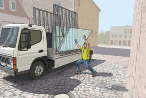 Immer wieder kommt es an Maschinen zu schweren Unfällen, wenn bewegliche Teile nicht ausreichend gesichert sind. So war es auch bei einem Unternehmen der grobkeramischen Industrie. Hier ereignete sich ein tödlicher Arbeitsunfall in einem Bereich zwischen zwei benachbarten Maschinen. Diese standen auf einem Podest in etwa zwei Meter Höhe und dienten dazu, gebrannte Ziegelsteine weiterzuverarbeiten. Eine der Anlagen war eine Schleifmaschine, die kleinste Abweichungen korrigierte. Anschließend legte eine Umsetzeinheit jeweils 300 Steine auf eine große Tafel. Riementriebe beförderten die tonnenschwere Fracht dann auf einem Transportschlitten weiter zu einer benachbarten Maschine. Diese verfüllte runde Hohlräume in den Steinen zu Wärmeschutzzwecken mit Isoliermaterial.